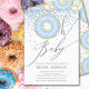 Design moderno Oh Chá de fraldas com rosquinha azul com brilho azul e uma fonte moderna de script. Sacudir nosso convite para ver uma coordenação de volta para um toque especial extra.
