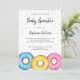 Este convite para o chá de fraldas Baby Sprinkle apresenta rosquinhas de aquarela em rosa, azul e amarelo. Perfeito para um chá de fraldas neutro em termos de gênero. Personalize-o com seus detalhes. Original Watercolor © Michele Davies.