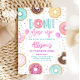 Europeia: Um belo e doce convite para o aniversário de uma rosquinha para um aniversário de uma menina (primeiro). O pastel rústico colorido ajustado qualquer estilo de festa com rosquinhas doces e confete colorido! Concebido para corresponder à nossa coleção de temas de Rosquinha.