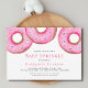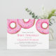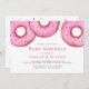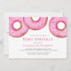 Convide a família e os amigos para o bebê da sua menina, aspersor, com este belo convite rosa. Ele apresenta rosquinhas cor-de-água rosa com borrifagens coloridas e tipografia na moda. Facilmente personalizável. Use a Ferramenta Design para alterar o tamanho, o estilo ou a cor do texto. À medida que criamos a nossa trabalho de arte, não encontraremos esta imagem exata de outros designers. Original Watercolor © Michele Davies.