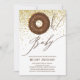 Chá de fraldas moderno, com uma rosquinha de chocolate com brilho dourado e uma fonte moderna de escrita. Sacudir nosso convite para ver uma coordenação de volta para um toque especial extra.