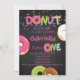 Você ROSQUINHA quer que ela cresça! Quão doce é uma Primeira Festa de aniversário? Comece a comemorar com este convite de aniversário do tema da rosquinha. Este convite tem um fundo preto de quadro negro. Na parte superior, diz "Rosquinha" em letras coloridas de bolhas.Há rosquinhas borrifadas com fosco também nos lados. Personalize com suas informações de partido no centro. Personalize o estilo, a cor ou o tamanho da fonte.