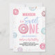 Um doce convite de aniversário de uma rosquinha para a primeira festa de aniversário da sua filha.