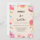 Rosquinha Primeiro Convite de aniversário. Primeiro convite de aniversário de menina bonita colorida com ilustração de rosquinhas com borrifadas coloridas.
