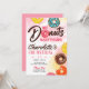 Prepare-se para celebrar com uma festa de aniversário temática de rosquinha! Este convite divertido e colorido apresenta rosquinhas adoráveis e um fundo rosa doce.