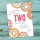 Cor-de-rosa Duas Rosquinhas Segundo Convite de aniversário apresenta rosquinhas desenhadas à mão bonitas com espirais coloridas e glacé.
