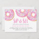 Sip and See! O vamos comemora com este sorriso de rosquinhas festivas e divertida e vê convite. Este chá de fraldas rosquinha apresenta rosquinhas cor-de-água cor-de-rosa com pulverizadores coloridos. Personalize adicionando nomes, data, hora, local e outros detalhes.
