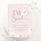 Rosquinhas cor-de-rosa-claro, dois convites de festas de segundo aniversário doces. Design de tendências cegas com rosquinhas cor-de-água rosa e branca. Apresenta o script de tipografia fonte dois. Você pode escolher convites impressos e/ou fazer o download instantâneo do modelo digital. Perfeito para uma na moda feminina no segundo dia de festa.