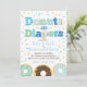 Perfeito para qualquer chá de fraldas de bebê ou aspersão de bebê - este convite para Rosquinha e Fralda apresenta um fundo estilo de quadro comum, letras coloridas de padrões, gráficos de rosquinha doces e sotaques de salpicador por toda a parte. Todos os outros textos podem ser personalizados para qualquer chá de fraldas ou texto de borrifo que você queira adicionar. Disponível também com fundo de quadro e cores de menina. Consulte comprar outras cores.