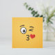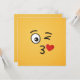 Um emoji beijador. Um olho está aberto, o outro está piscando. Um coração é mostrado deixando a boca beijando.