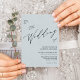 Roteiro Moderno Azul Dusty Tudo Em Um Simples Cartão De Convite De Casamento Minimalista. Celebre o seu dia especial com esta elegante e bela carta de convite para casamento para embelezar a sua ocasião especial. Todos os textos estão pré-organizados para que você personalize fácil e rapidamente com seus próprios detalhes. Se você precisar de mais itens de personalização ou de correspondência, envie um e-mail para alldaybreakfastzazzle@gmail.com - gostaríamos de ajudar.