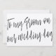 Estilo de caligrafia simples e bonito "Para o meu noivo no dia do nosso casamento" cartão do dia do casamento.