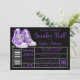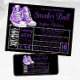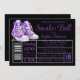 O convite da bola de tênis roxo com tênis roxos bonitos em um fundo preto e prateado com etiqueta de calçado. Este convite à bola de tênis roxo e preto é facilmente personalizado para o seu evento simplesmente adicionando os seus detalhes. Você também pode alterar a cor do plano de fundo e a cor do texto.