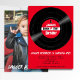 Faça um sucesso com seu convidado com este único convite de primeiro aniversário. Um registro personalizado de vinil na frente e uma foto do tamanho do cheio do seu pequeno foguetão atrás. Seja a melhor festa de aniversário de rock do convite à decoração - tudo completamente rochoso e coordenado. O estilo Rock and roll inclui o primeiro raio do bebê! Todas as crianças legal as têm. Vamos! O convite é vermelho. O rótulo do registro é vermelho com uma faixa branca e texto preto e branco. Todos os textos e cores podem ser personalizados.