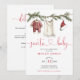 Este convite de chá de bebê com varal de roupa de bebê de papai noel fofo pode ser personalizado com suas informações em tipografia moderna. Com o código QR do seu registro e detalhes do evento no verso. Criado por Thisisnotme©