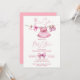 Roupas cor-de-rosa pré-despejadas numa linha raparigas chá de fraldas Convite para descarregamento digital instantâneo de modelo, roupas bonitinhas de bebê cor-de-rosa e um arco cor-de-rosa pincelado numa linha convites para chás de fraldas