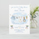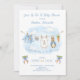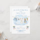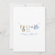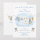 O convite apresenta uma doce varal de roupa em aquarela esticado no centro, exibindo orgulhosamente itens minúsculos e adoráveis, cada um apresentando um coelhinho fofo vestido de azul. A cena é completada com laços azuis encantadores segurando dois maços de cenouras frescas renderizados em um estilo suave de aquarela. Adicione facilmente seus próprios detalhes e altere o estilo da fonte, tamanho, cor e posicionamento se desejar. Este convite é um lindo souvenir, convidando seus convidados a compartilhar a expectativa "saltitante" da chegada do seu bebê!