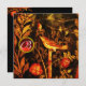 Beleza e natureza antigas. Desenho floral colorido e elegante com um pequeno rouxinol, rosas vermelhas, rosas em botão, folhas amarelo-ouro, plantas sobre um fundo preto e marrom com uma vibrante pedra preciosa rubi vermelha em 3D. Reelaboração digital de um fragmento de pintura de mural de jardim da Casa dos Cupidos Dourados em Pompéia: 62 d.C., Pompéia, Museu Nacional Arqueológico de Nápoles. É também um belo desenho para o Natal, feriados, ocasiões especiais, aniversários, casamento e Dia dos Namorados.