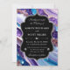 Celebre com estilo este deslumbrante design de casamento com padrões inspirados em ágata roxa, azul e branca, acentuados por texturas brilhantes. A moldura preta ornamentada e a paleta de cores ricas evocam elegância, romance e glamour moderno. Perfeito para papelaria de casamento que combina arte ousada com sofisticação atemporal, ideal para casais que buscam uma estética dramática e luxuosa.