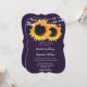Este convite de casamento floral do país rústico, com girassóis sobre um fundo de burlap, enfeitado com luzes de cordas, é perfeito para convidar seus hóspedes para o seu país rústico roxo, jardim, quintal ou festa de casamento de celeiro inspirado em girassóis.