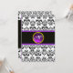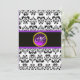 Convites ROXO DAMASKO ÁMETHYST MONOGRAMA, preto e branco