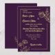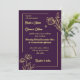 Convite de casamento simples único com flores de ouro românticas e elegantes em fundo roxo PARA PRODUTOS MAIS CORRESPONDENTES clique na coleção acima ou entre em contato comigo.