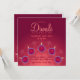 Diyas roxas em um rangoli com uma cor de pêssego para o fundo de burgundy para Diwali. Convite elegante.