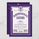 Jazz ele acima em seu pecador do ensaio do casamento com estes convites do jantar de ensaio do casamento de Nova Orleães. A parte dianteira dos convites caracteriza um design do estilo do vintage do divertimento com um símbolo da flor de lis em uma bandeira, o jantar de ensaio das palavras em uma pia batismal estilizado, e construções tiradas mão do estilo do bairro francês e da espingarda na parte inferior. Mostrado aqui em um esquema de cores roxo. Personalize com sua informação do partido usando o modelo. O clique personaliza para fazer mudanças à colocação da pia batismal e do texto.