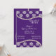 Casamento/chá de panela bonitos feito em roxo e em branco. Convite roxo rico impressionante, com design floral branco, na parte superior e na parte inferior do convite, com gráficos de uma costa de pérolas que limitam a área de texto. O texto no branco é inteiramente customizável para seu evento. O convite bonito a noiva ser amará sua vida.