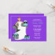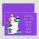 Convide os convidados para um chá de panela no estilo com este chá de panela moderno e do divertimento. Este convite do roxo e da turquesa caracteriza uma noiva de cabelo vermelha que senta-se em uma cadeira cercada por presentes.