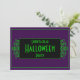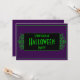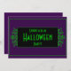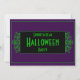 Este convite de festas de assombro será perfeito para o seu cesto de Halloween! Este cartão apresenta uma bela imagem decorativa verde neon na frente, o fundo é uma púrpura escura para a frente e para o verso do convite. O texto é totalmente personalizável para que você possa adicionar os detalhes para o seu partido! Agora o vamos se prepara para ter a melhor festa do ano!