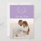 Convite de salvar a data de casamento em lilás roxo com foto. O design apresenta uma linda coroa branca que envolve as iniciais do monograma da noiva e do noivo em um fundo lilás roxo e sua foto de noivado favorita. Personalize com seus nomes, data e foto. O verso do cartão apresenta uma coroa de monograma que envolve as iniciais do monograma da noiva e do noivo em um fundo lilás roxo. Personalize com as iniciais do seu monograma, nomes, data e local do casamento.