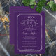 Um elegante rolo de faixa e um quadro redimensionado de tom prateado e design de convite de festa de formatura roxo que pode ser personalizado para graduações de segundo grau, faculdade, universidade ou escola profissional. Design por Holiday Hearts Design (todos os direitos reservados).