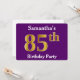 Convites Roxo, Faux Dourada 85.a Festa de aniversário; Nome