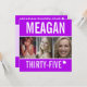 35º convites de aniversário roxos, cor-de-rosa e branco de lado duplo. Um design simples gráfico brilhante no qual você pode adicionar três fotos da sua aniversariante. Personalize esses convites de aniversário de fotos com seus próprios detalhes de evento, nome e idade de aniversário, lidos atualmente por trinta e cinco. Outros itens correspondentes estão disponíveis. Gráficos e design exclusivos por www.mylittleeden.com