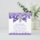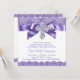 Convite Purple First Communion com uma elegante cruz roxa e diamante prateado num lindo fundo de renda roxo. Você pode personalizar facilmente este convite bonito da Primeira Comunhão roxo adicionando seus detalhes de evento no tamanho e cor da fonte e na redação de sua escolha.