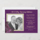 Convide os convidados para uma celebração de aniversário de casamento de prata ou ouro / cerimônia de renovação de votos com um modelo de convite personalizado. Personalize facilmente os cartões com flores de lilás roxo escuro e moldura com aparência de aniagem que contém uma foto do casal. Lilases roxas decoram o canto inferior e o verso é bege para combinar com a cor da moldura. A fonte de letra moderna é adicionada em forma de parágrafo com tantas ou tão poucas palavras quanto necessário.