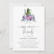 Flores roxas em um convite de festas de chá de chá de fraldas de buquê pintado manualmente, projetado para ser rápido e facilmente personalizado para seu dia especial.