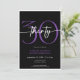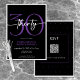 Moderno e chic, este convite de aniversário combina preto clássico e branco com sotaques de roxo brilhante. É um design mínimo é um design simples e divertido para celebrar o aniversário do marco. A parte traseira retém uma área para um código QR para resposta RSVP. Criado pela imprensa simplesmente de farmácia.