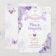 Garota Roxa Primeira Comunhão Dourada Cruzada Borboleta Floral Convite Primera Comunhão