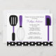 Parta seu evento fora do direito com nosso chá de panela retro da cozinha do divertimento que caracteriza uma espátula roxa e preta brilhante & whisk apenas personalizam nosso convite com sua informação do casamento e você é todo ajusta-se para ir. Estúdio do cacau do ©