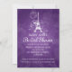 Design elegante do "chá de panela" do casamento com design de Paris e texto roxos românticos do costume. Imprima seus família e amigos com este design à moda e moderno. Inteiramente customizável! Fácil de usar e fácil personalizar. Ordem hoje!