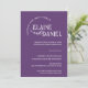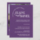 Anuncie seu dia especial em estilo com este romântico convite de casamento roxo com uma foto de casal alegre e uma tipografia elegante. Este cartão de casamento personalizável destaca os nomes da noiva e do noivo junto com a data do casamento, os detalhes do local e uma mensagem de convite calorosa. Perfeito para os casais modernos que buscam uma forma na moda, mas pessoal, de convidar os entes queridos para sua celebração. Totalmente editável e ideal para impressão a pedido, este design faz uma manutenção memorável e adiciona um toque pessoal à sua coleção de papelaria de casamento.