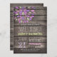 Doce 16, 16 Convite de aniversário com lavanda roxa, rosa claro, verde brilhante, flor, design floral no campo de colheita rústica ocidental, madeira de celeiro castanha, fundo impresso em madeira com elegantes e à moda antiga. Perfeito para o país, fazenda, fazenda, tema de barnyard 16 Festas de aniversário! Este convite giro e divertido é o excelente ano redondo para primavera, verão, outono ou festas de aniversário de inverno!