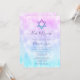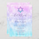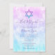 Este moderno convite para Bat Mitzvah, corante azul-púrpura e lacre, apresenta um roteiro de caligrafia e Estrela de David.