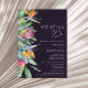 Este roxo tropical colorido que ainda fazemos é perfeito para o seu destino de boho moderno, verde, púrpura, renovação do vale de pêssego. Design apresenta um buquê elegante de verde-aquarela de praia clássico e flores, incluindo eucalipto verde-sábio, mauve e proteína vermelha, hibisco rosa-pincel, pássaro-laranja e azul do paraíso e folha de palma verde-escura. O design é ideal para um simples, criativo, único casamento de viagem para primavera, verão, outono ou inverno! Por favor, encontre outra papelaria de casamento no resto da coleção.