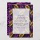Cartão de convite para festas de formatura da selva tropical em sotaque de ouro de folha traseira e de folha falsa e roxo personalizável para suas especificidades.