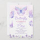 Roxo Whimsical Our Little Butterfly primeiro aniversario Invitation Sweet roxa borboleta Temed aniversário convite com cinco borboletas algumas flores roxas silvestres e falsos pontos de brilho dourado. Este primeiro convite de aniversário para mulheres borboletas é totalmente editável e pode ser usado para qualquer idade.