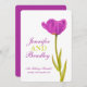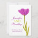 Única tulipa roxa bonita em convites florais de um casamento da aguarela do Livro Branco. Edite este convites com seus próprios palavras e detalhes do casamento. As belas artes românticas simples do primavera do estilo country convidam. Design e pintura da aguarela por Sarah Trett www.sarahtrett.com para www.mylittleeden.com