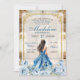 Convidado Real Ballroom Dusty Blue Quinceanera, Dusty Blue e Dourada Princesa Real em Ballgrown Quinceanera Convite, Mis Quince Anos de Invitaciones